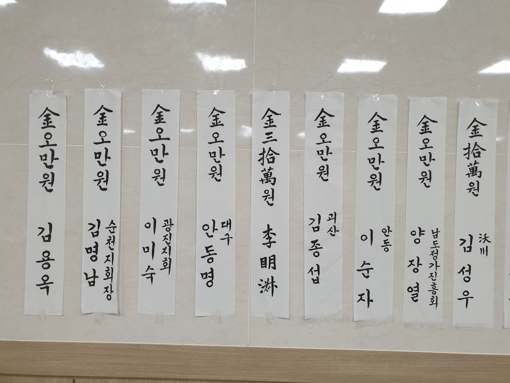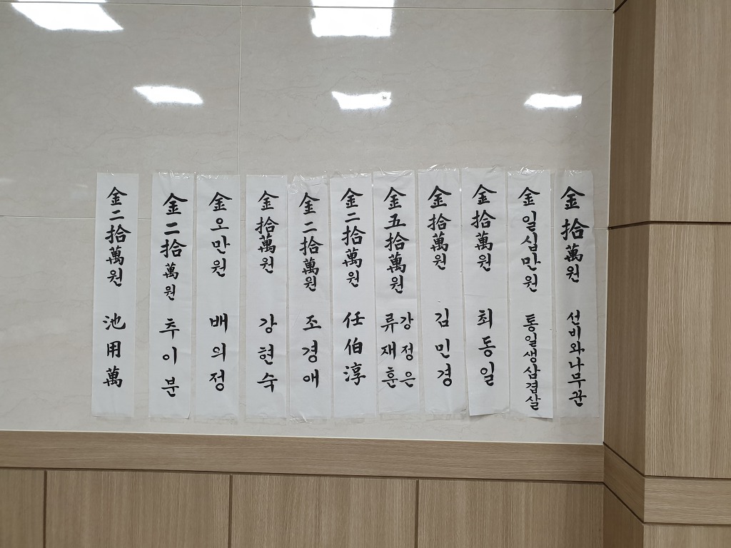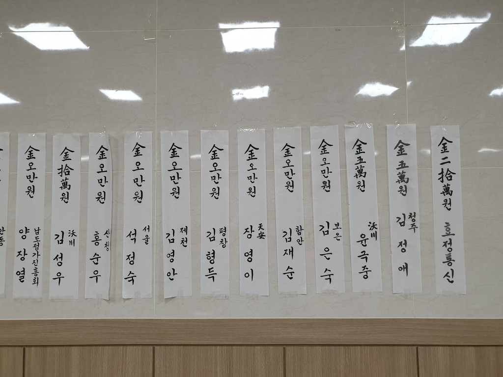 기부금을 주신 분의 명단입니다