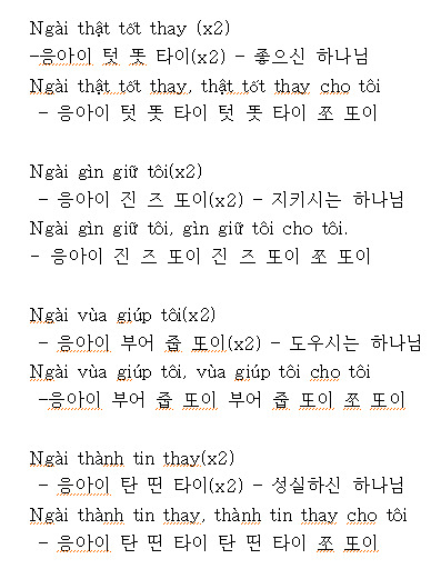 [스크랩] [(베트남 찬양)]오늘 베트남, 캄보디아어 찬양 당신은 사랑받기위해, 좋으신 하나님 악보 가사 올립니다. 작성자작곡가김호식|작성시간11.07.08|조회수3,644 목록 댓글 0 글자크기 작게가 글자크기 크게가 베트남 찬양 좋으신_하나님(베트남).wma 평안을_너에게_주노라(베트남찬양).wma 호산나_음원(베트남).mp3 캄보디아 찬양 캄보디아 찬양 베트남 찬양 첨부파일첨부된 파일이 7개 있습니다. jpg 파일 당신은 사랑받기 위해(베트남어).jpg jpg 파일 당신은 사랑받기 위해(캄보디아어).jpg jpg 파일 좋은신_하나님_(캄보디아).jpg jpg 파일 좋으신 하나님(베트남).jpg etc 파일 좋으신_하나님(베트남).wma etc 파일 평안을_너에게_주노라(베트남찬양).wma mp3 파일 호산나_음원(베트남).mp3 다음검색 스크랩 원문 : 행 복 한 아 시 아 현재 게시글 추가 기능 열기 북마크 공유하기 신고 센터로 신고 댓글 댓글 0 댓글쓰기 답글쓰기 댓글 리스트