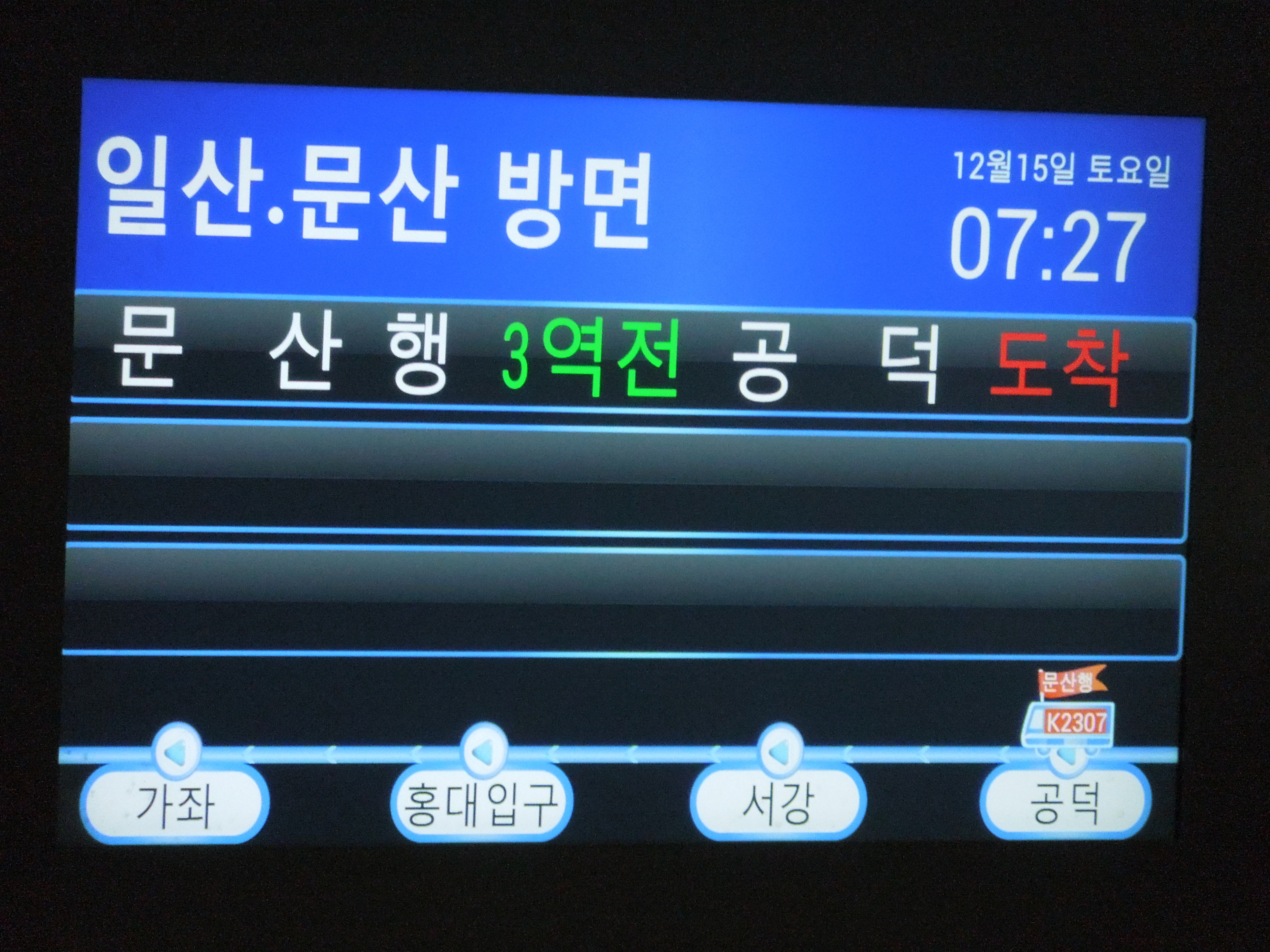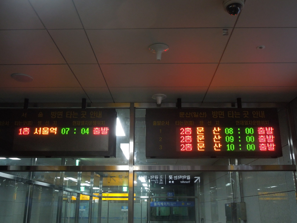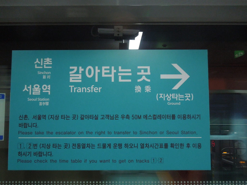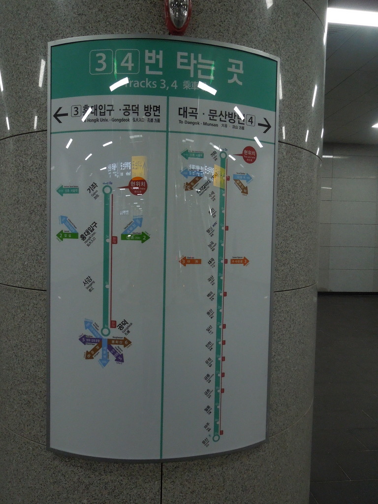 근데 좀 웃긴것은 스크린도어 위에 글꼴은 코레일체가 아니고(분당선도 그렇네요), 벽에부착하는 역명판 전후역 알림표시도, 분당선 구간은 동그라미속에 역번호를 기입한곳이 있고, 경의선은 그냥 숫자만 써있고, 코레일 안내표지류가 통일된 지침이 아닌 시공당시마다 틀린것 같아 좀 아쉽네요 -