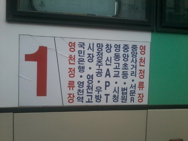 영천 1번입니다. 영천도 이제 버스 환승제 실시한거 알고 계시죠?