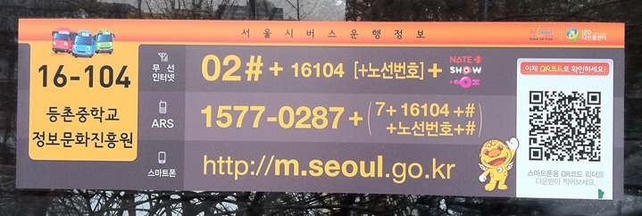 위 사진 : 서울특별시 시내버스 정류장 QR코드표..