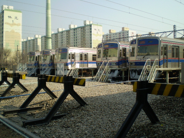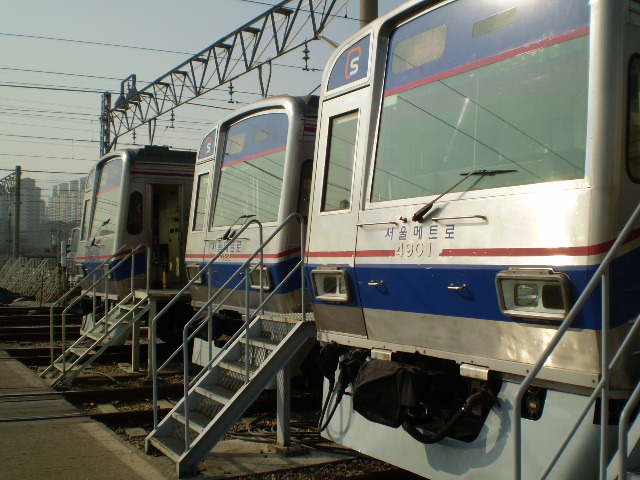 검수고에 있는 4호선 전동차들입니다. ^^ 다음은 남쪽으로 가서 유치선에 있는 전동차를 보러 갈 겁니다