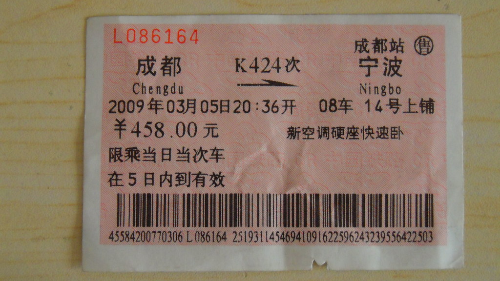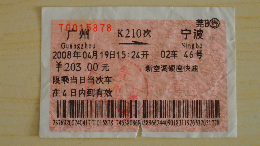 광저우->저장성 닝보....전구간 잉줘..약 26시간 잉줘(하지만은 본인의 잉줘 최고 기록은 청두에서 닝보까지 55시간 그리고 상하이-베이징 완행열차 24시간 잉줘)..참고로 상하이-베이징 완행열차 전 구간 잉줘 올 여름에 한번 더 할 예정이라는...