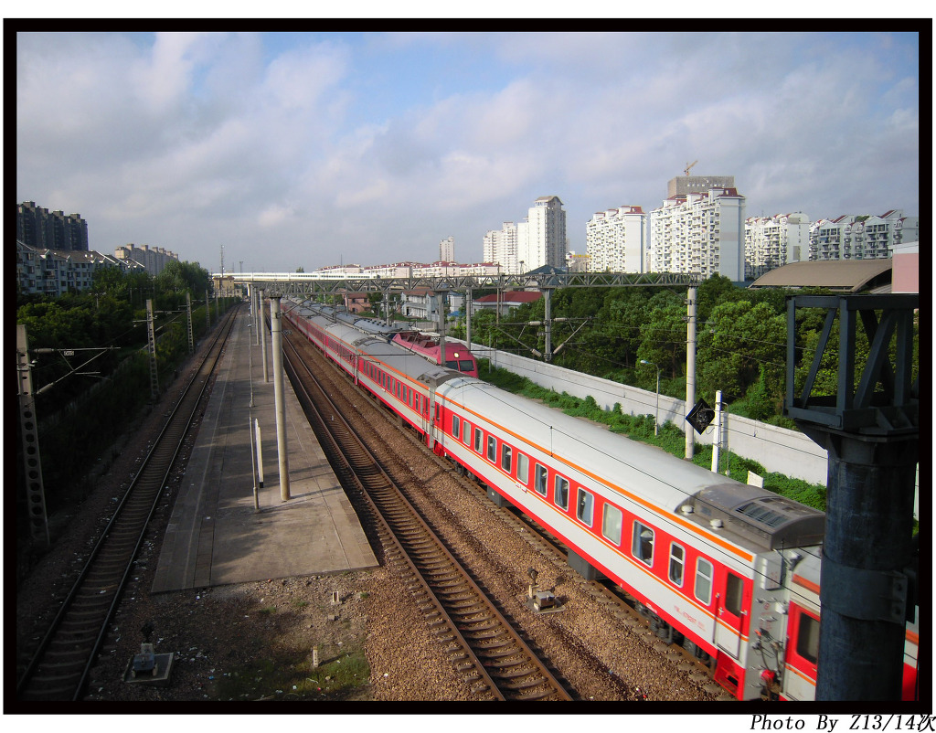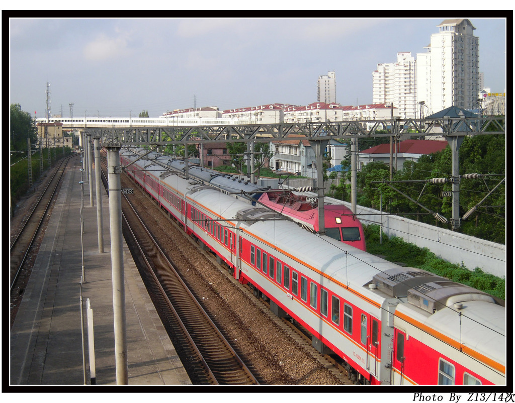 올릴거는 많은데....상하이남역 부근에서 찍은 우창-상하이남의 K12次열차 입니다......결국 텐진-항저우 T33열차..우창-상하이남한데 잡힙니다....기관차는 난창철도국의 SS8기관차..