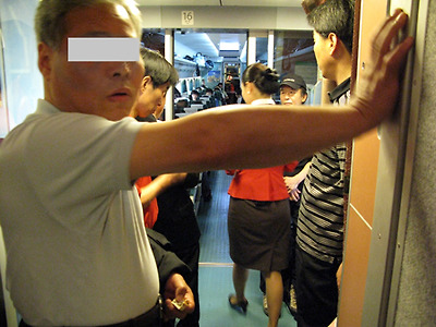 아니나 다를까. 제 티켓에 명기된 17호 차에 가보니 사람들이 길게 줄을 서 있었습니다. 어떤 분은 "내가 먼저 왔다"며 다른 분과 언쟁을 벌이기도 하시더군요.