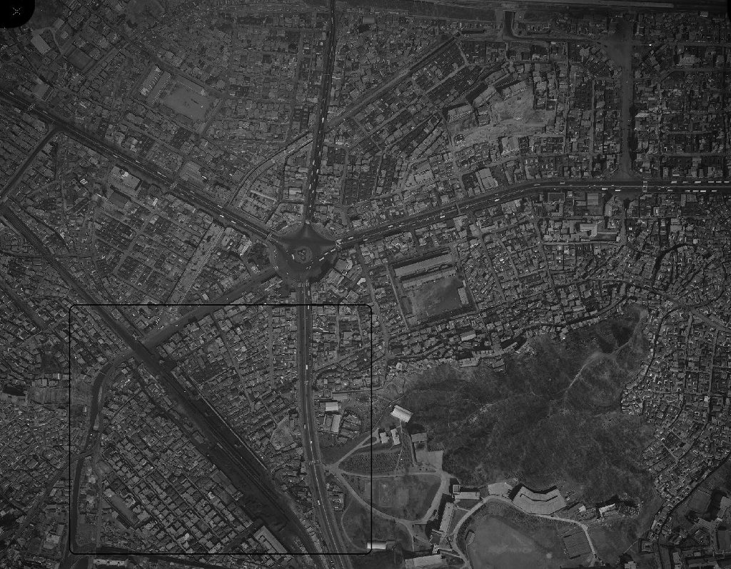 옛날 항공 사진의 경우, 기본 항공사진 위에 정확하게 뜨진 않고, 삐뚤빼뚤하게 뜹니다. 필름 부분도 보이구요.