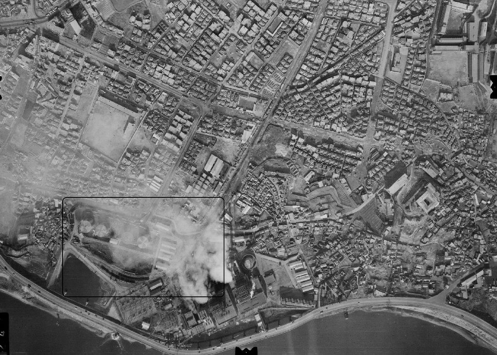 서울화력발전소는 발전소다 보니 항공사진이 아예 검색이 안되거나, 몇몇은 검색이 되더라도 검은 칠이 돼 있어서 볼 수가 없었습니다. 다만 1972년 1월 16일 사진에 이렇게 곡선 형태의 서울화력발전소 구내 선로가 찍힌 것이 있더군요.