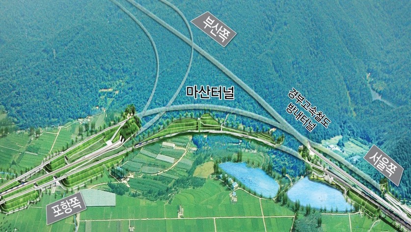 눈에 잘 띄진 않지만 경부고속철도와 동해남부선을 연결하는 공사도 진척이 잘 되고 있었네요 ㅎㅎ