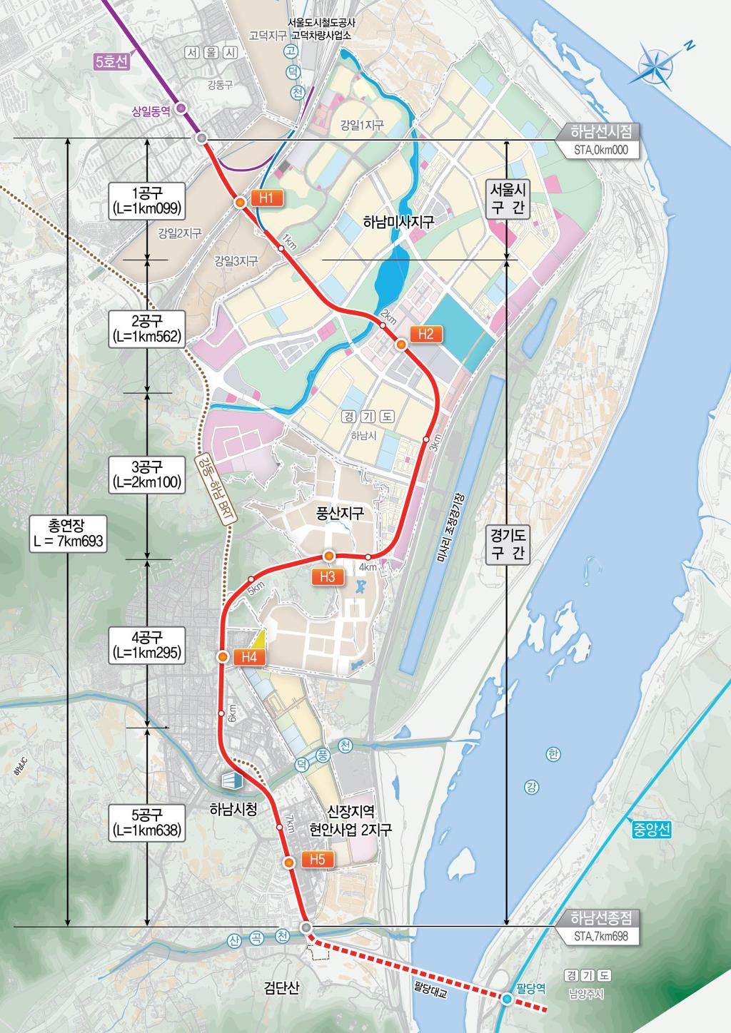 현재 5호선 하남 연장 사업이 진행중이지요.