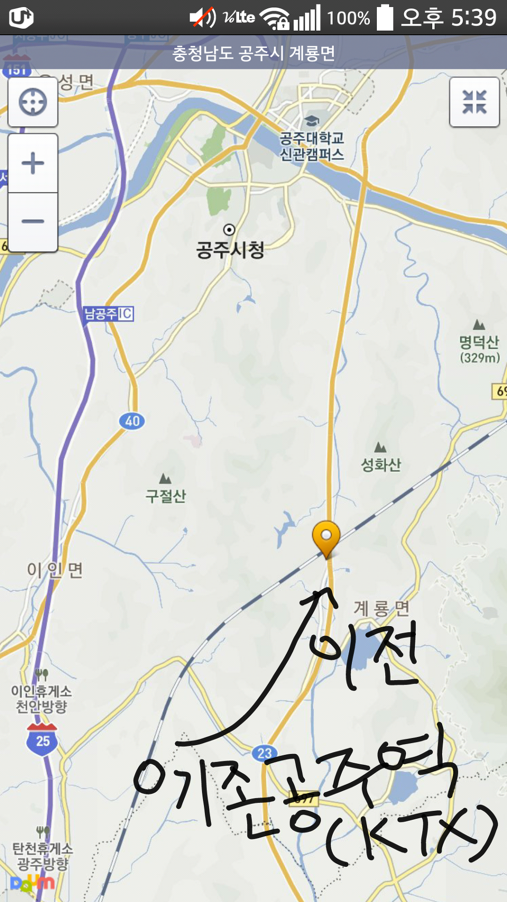 공주역(KTX)은 공주시내와 너무 멀리 떨어진 곳에 위치하고 있죠.(아래 사진 참고)