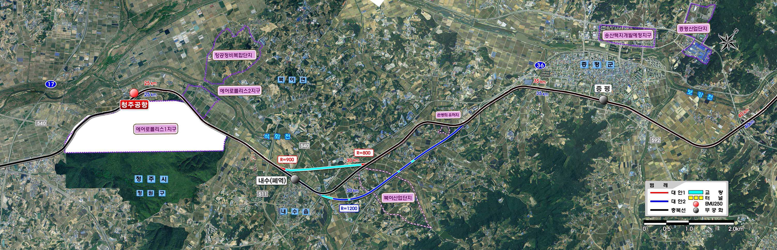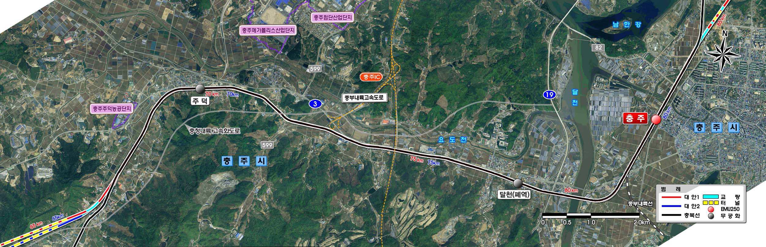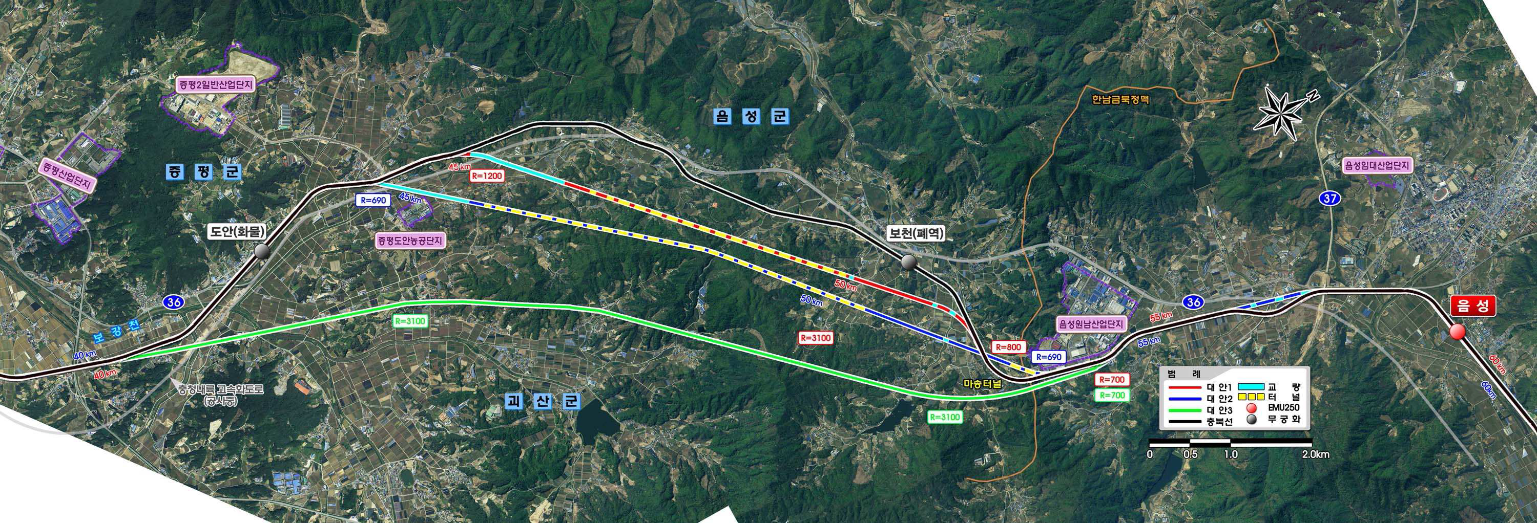 오모군님께서 알려주신 환경영향평가 기준의 충북선 고속화 노선도 모음입니다.