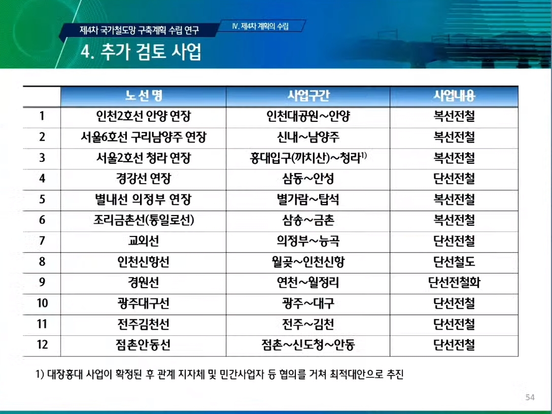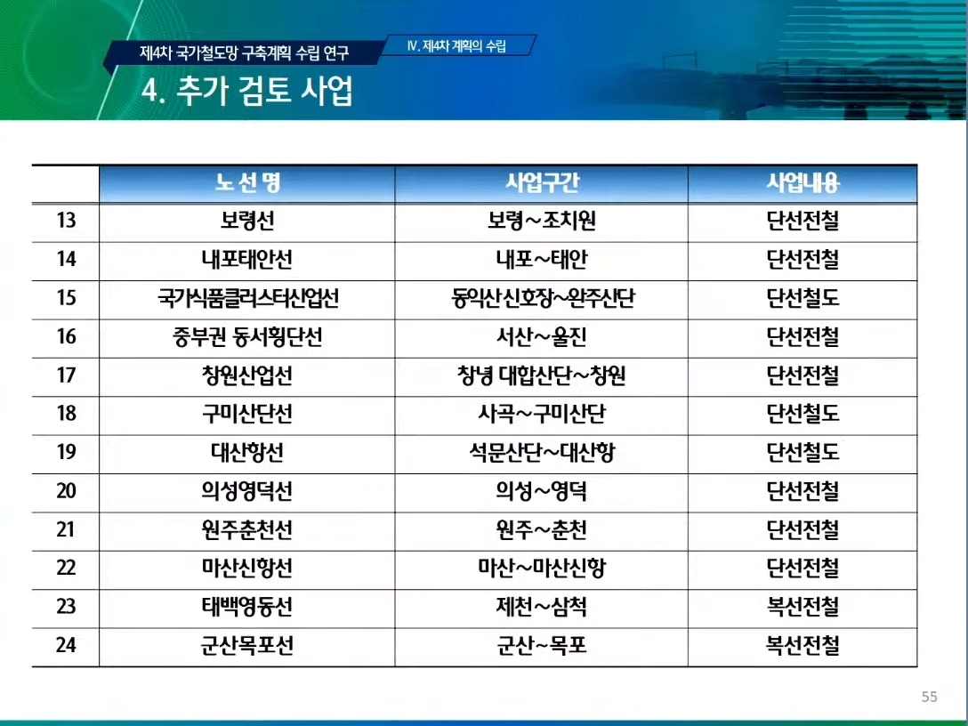 제4차 국가철도망 구축계획 노선별 개별 노선도 작성자한우진|작성시간21.04.23|조회수9,859 목록 댓글 0 글자크기 작게가 글자크기 크게가 제4차 국가철도망 구축계획 노선별 개별 노선도입니다 추진노선 43개, 추가검토 노선 24개 다음검색 현재 게시글 추가 기능 열기 북마크 공유하기 신고 센터로 신고 댓글 댓글 0 댓글쓰기 답글쓰기 댓글 리스트