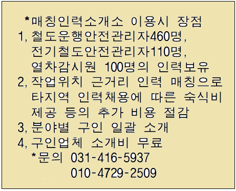 철도운행안전관리자, 전기철도안전관리자, 열차감시원 구인 구직 매칭 작성자김철도|작성시간22.05.16|조회수380 목록 댓글 0 글자크기 작게가 글자크기 크게가 다음검색 현재 게시글 추가 기능 열기 북마크 공유하기 신고 센터로 신고 댓글 댓글 0 댓글쓰기 답글쓰기 댓글 리스트