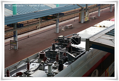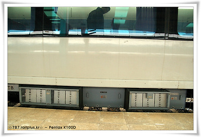 팬터그래프 옆에 달린 박스들은 카메라로서 계측실에서 관찰이 가능하도록 해 놓았습니다.