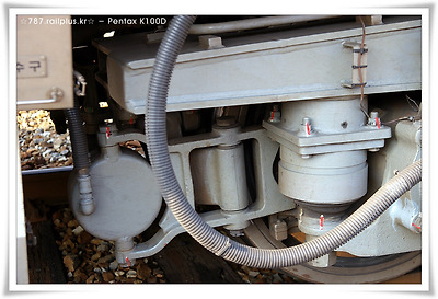 기술시험용 차량이기 때문에 이렇게 대차에 카메라를 붙였지요. 3호차에 있는 계측실에서 움직임을 관찰할 수 있습니다.
