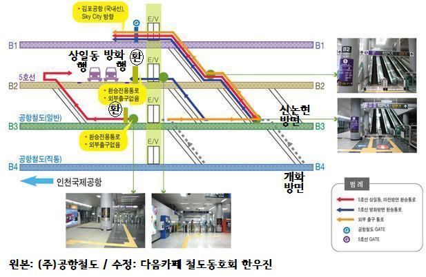 따라서 현재는 공항철도와 5호선 사이에 아래처럼 환승을 하는데 (출처: 공항철도 홈페이지)