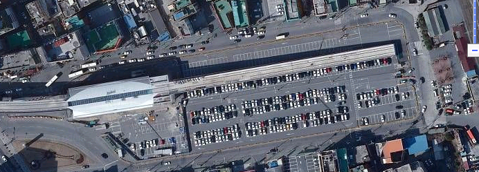 부산김해경전철의 도심 종착역인 사상역의 항공(위성)사진 비교입니다.
