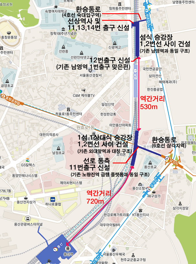일단 남영역을 이설하여 1호선 숙대입구(이름은 어떻게 하더라도 상관없습니다)역이