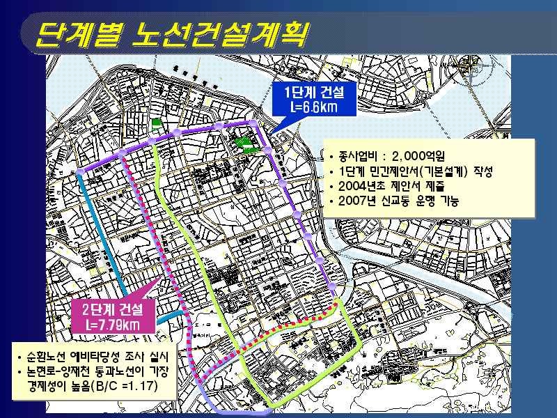 □ 이날, 서울시 관계자는 “아직까지 본 사업을 중앙정부예산위주의 광역교통개선대책 사업으로 추진 할 것인지 서울시예산위주의 도시철도사업으로 추진할 것인지에 대한 구체적인 추진방향이 정해지지 않은 상태”라며,