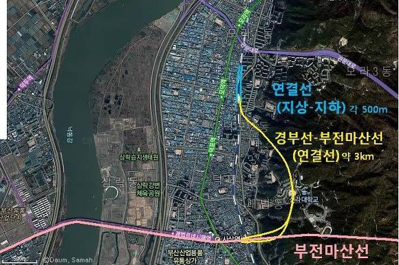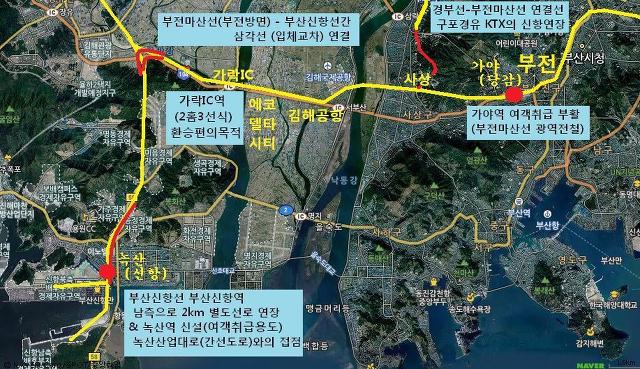 3. 부전마산선이 개통될 2019년(+1~2년)에 동시개통을 해서 녹산을 부산시내에 붙이자는거죠.
