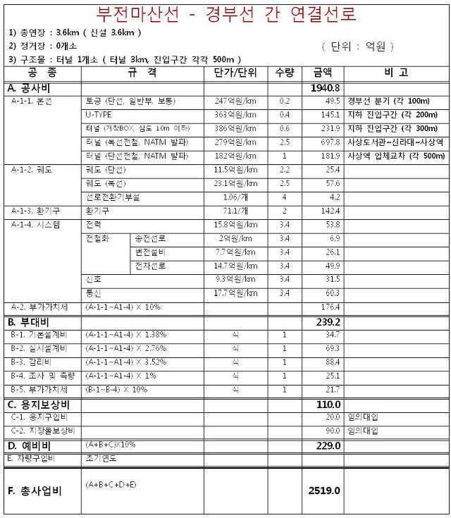 KTX의 부산신항선 진입을 위한 경부선-부전마산선 연결선로를 제외하면 4,000억원대입니다.