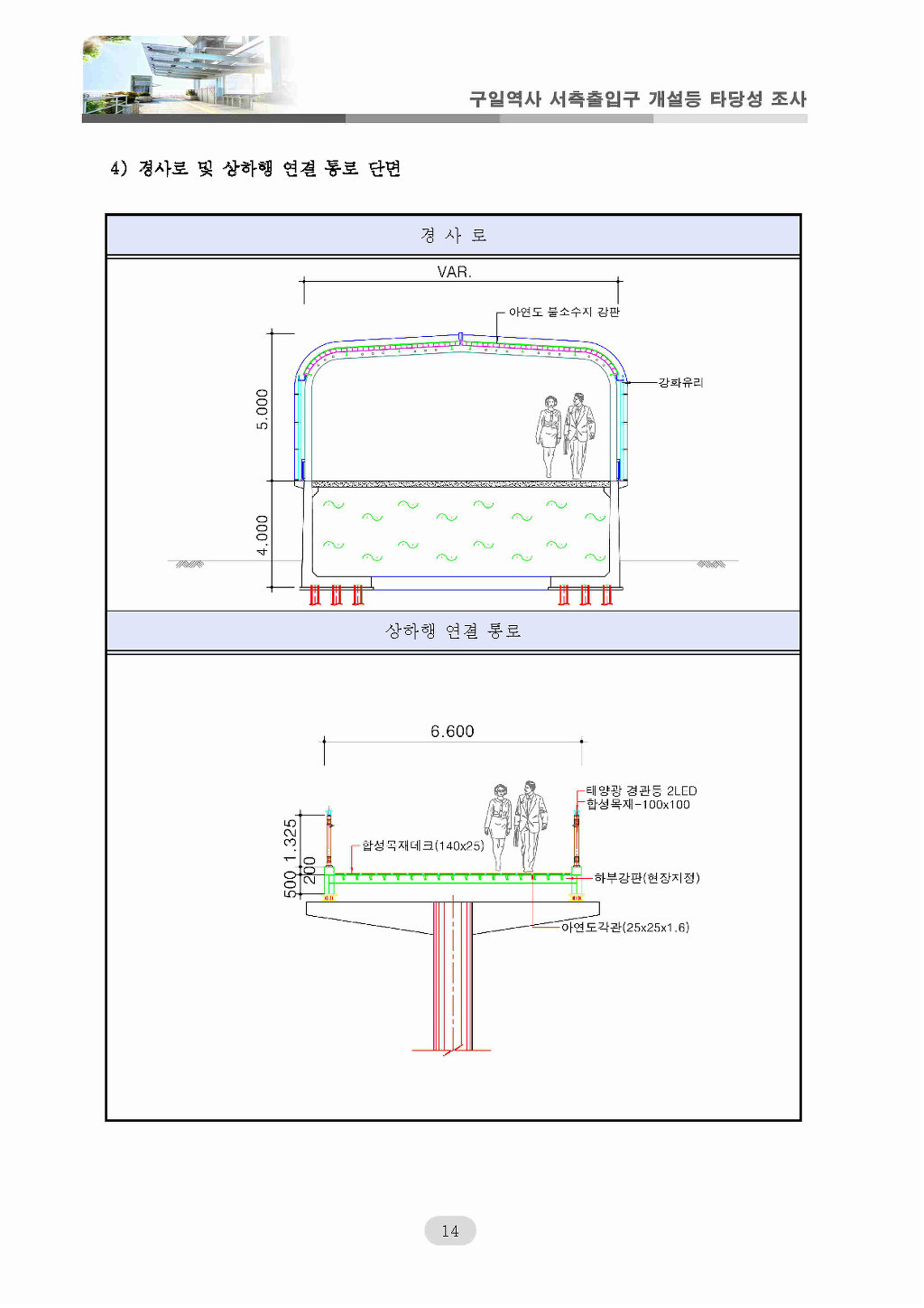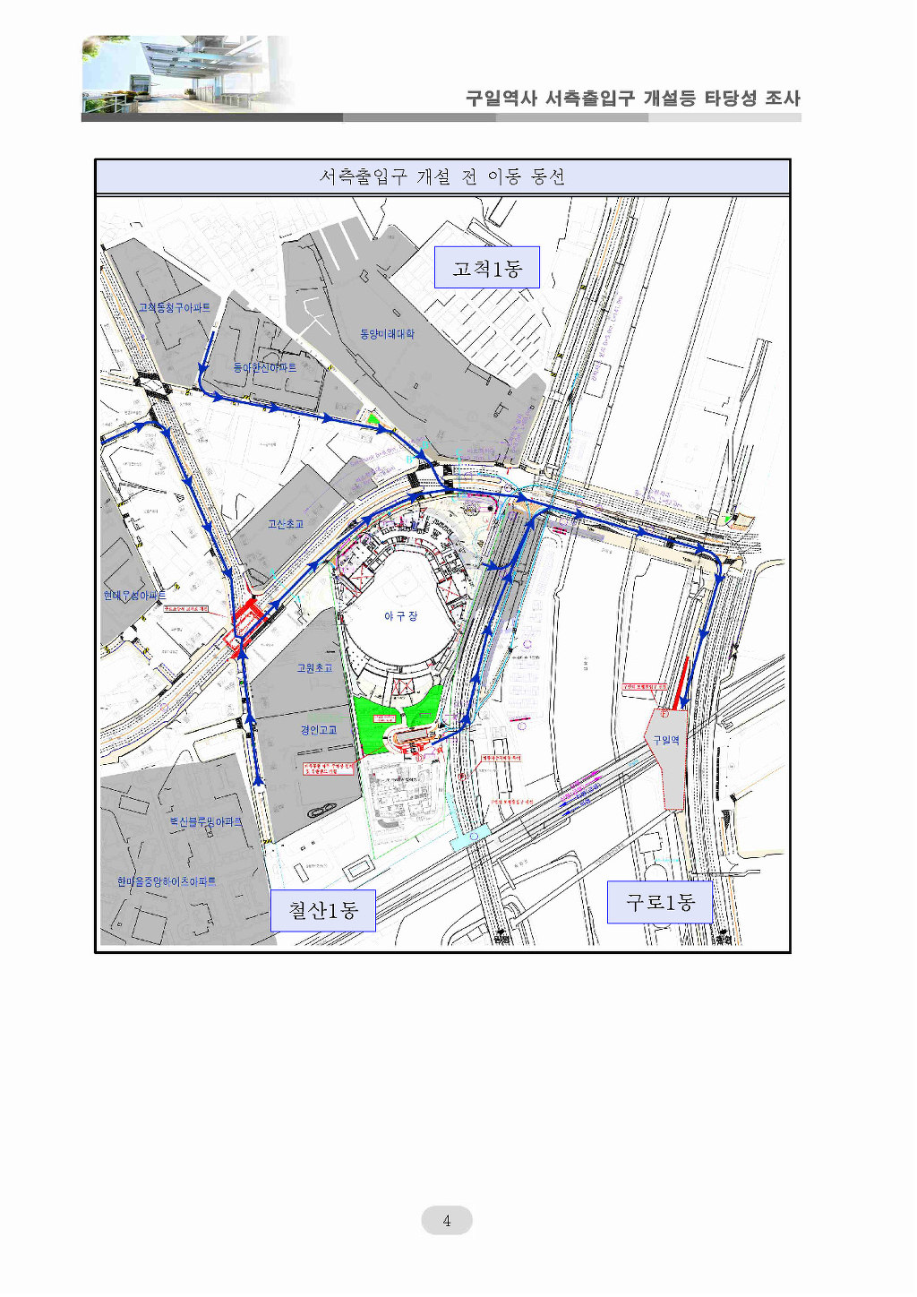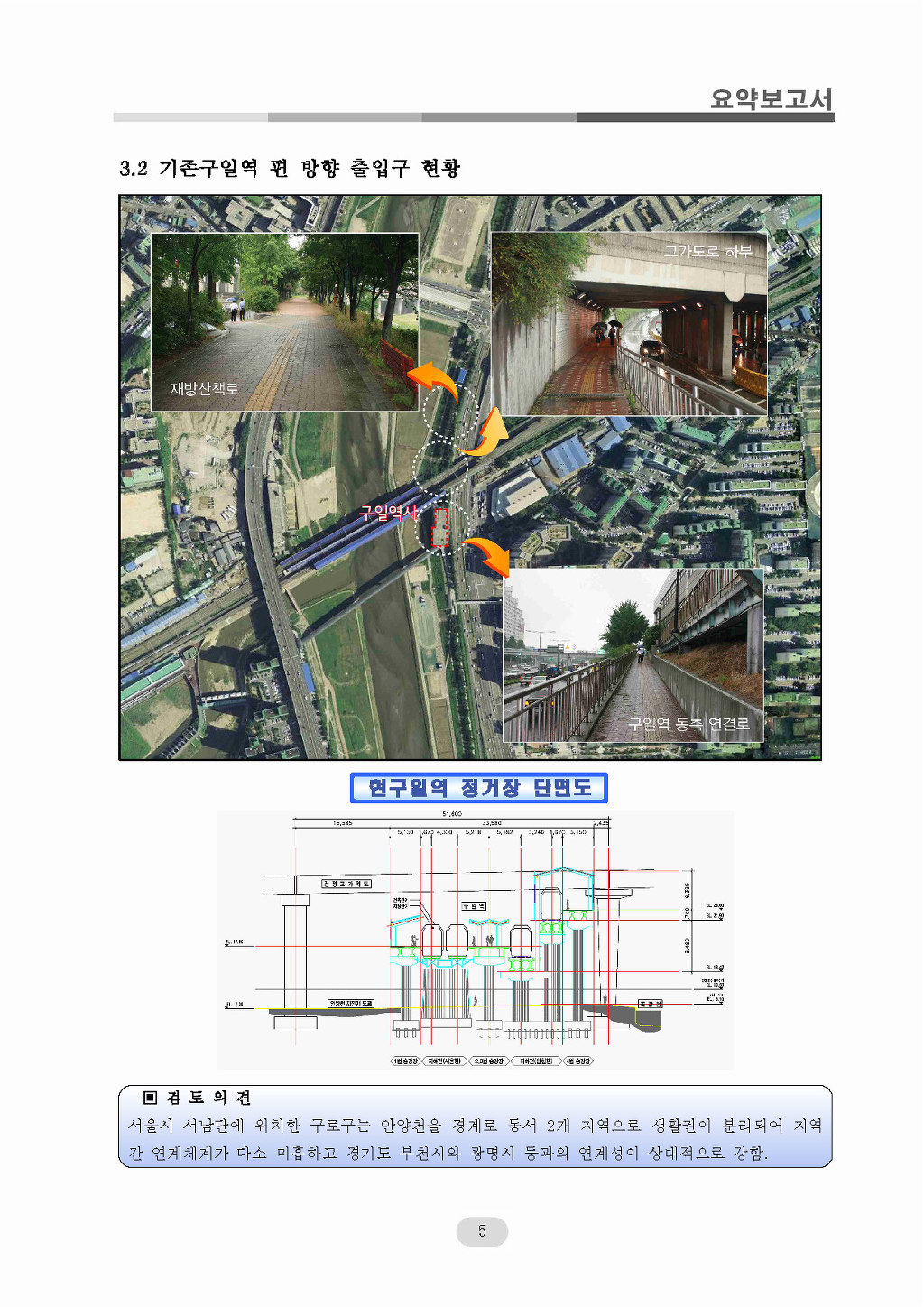 - 일단 구일역 승강장 서쪽끝 상부에 구름다리를 만들고 (구름다리 위치는 광명고가도로 동쪽임)
