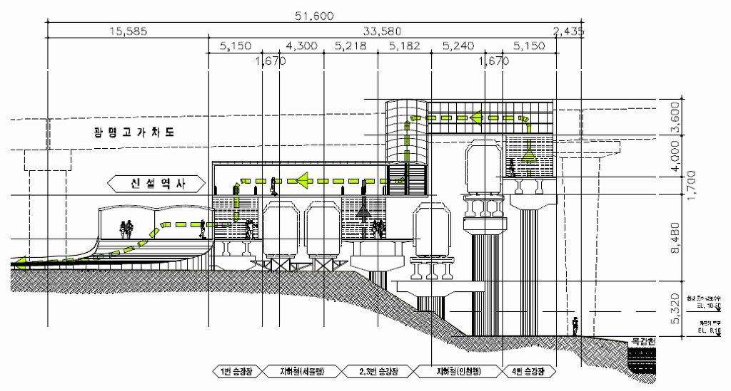 - 완행하행선(높이가 높은 승강장)에서 이곳까지 계단을 만들고