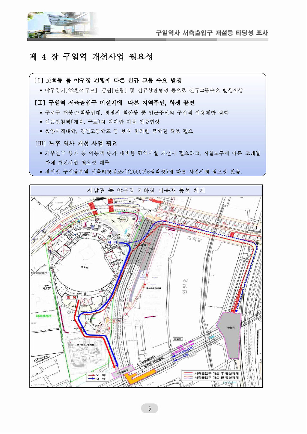 작성자키큰사람 작성시간 14.09.03 서부간선도로는 지하화 와 지상화를 병행 으로 공사가 시작될예정이라서 두고봐야할것 같고 돔구장 옆 고척교 다리의 돔구장쪽 날개부분을 확장해서 돔구장옆 도로에서 나오는 차량을 신속하게 빼낼수있게 하는 방법과 돔구장에서 구일역 으로 접근성을 최대한 찾는게 가장 급합니다