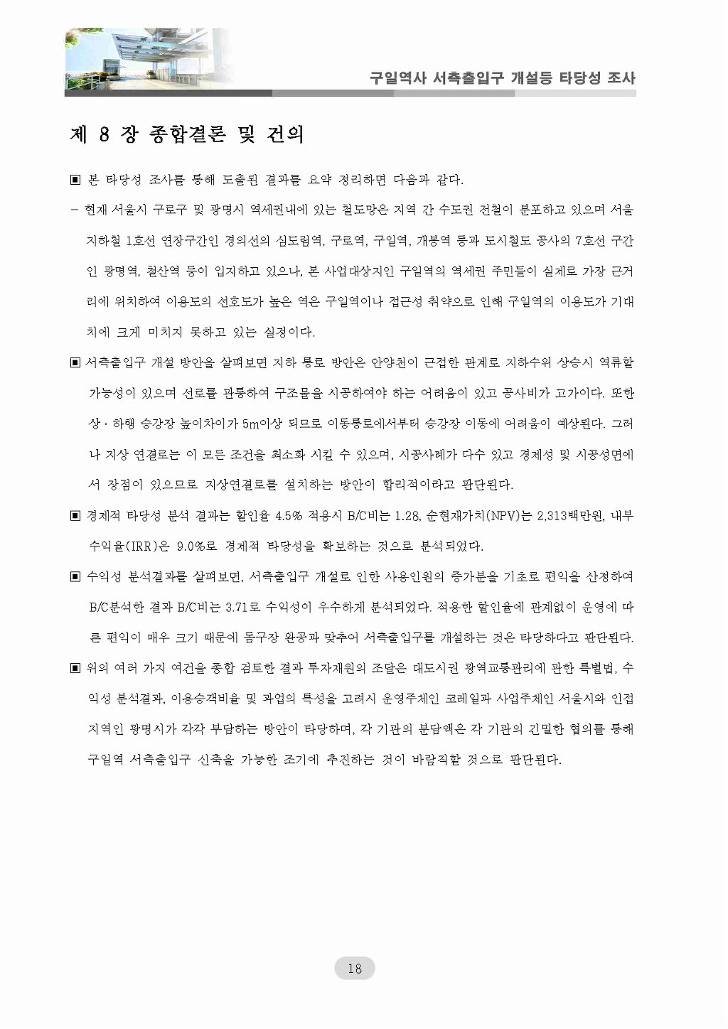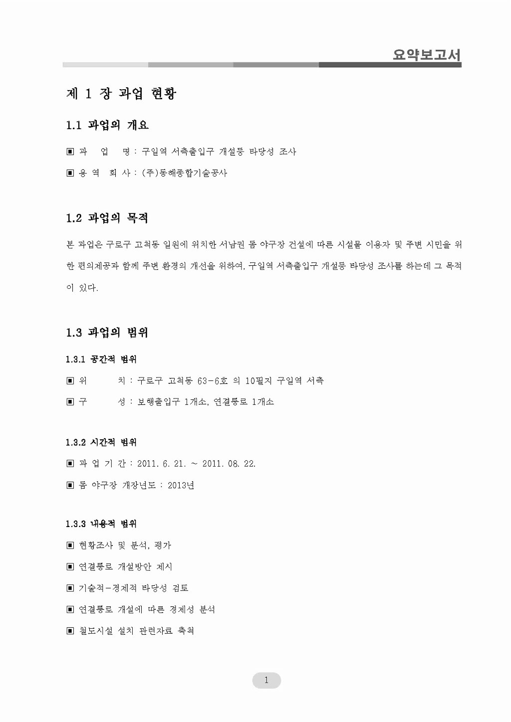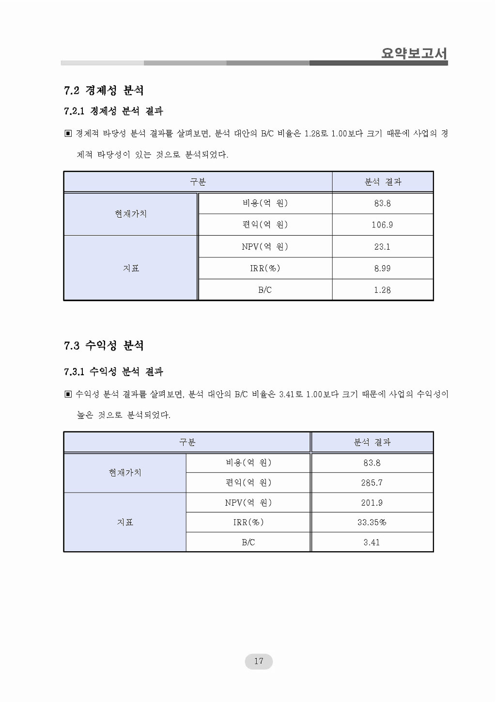 아래 타당성조사 요약보고서가 있으니 참고할 수 있습니다.