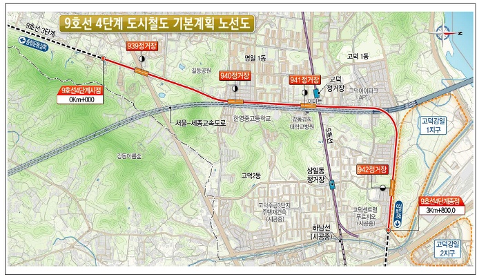 최초 3단계 + 보훈병원 1정거장 + 4단계 + 강일1지구 1정거장