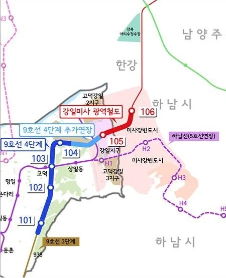 9호선이 여기까지 연장되면 서울시-경기도 경계에 도착하게 되어