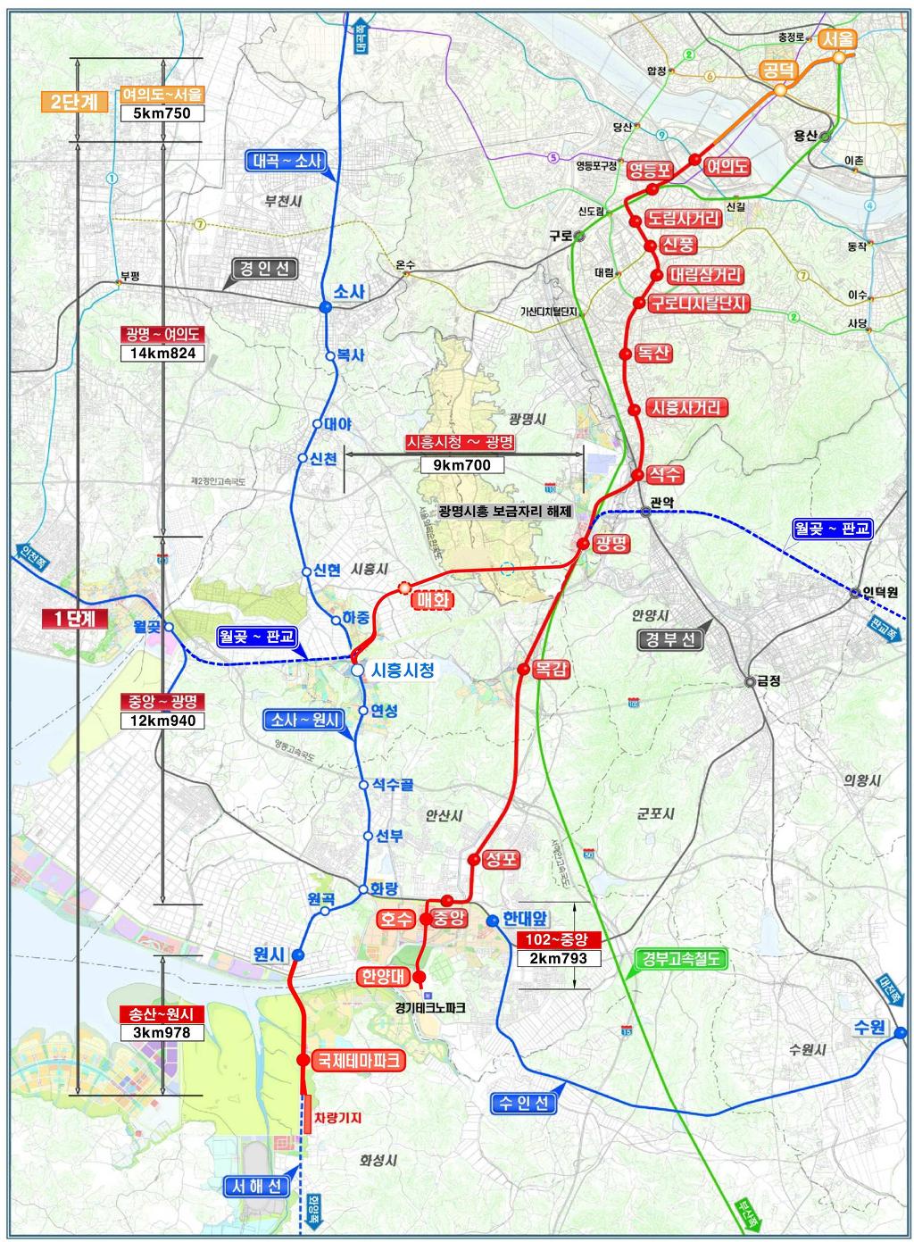 광명-시흥시청 구간은 월곶판교선과 선로공유합니다.
