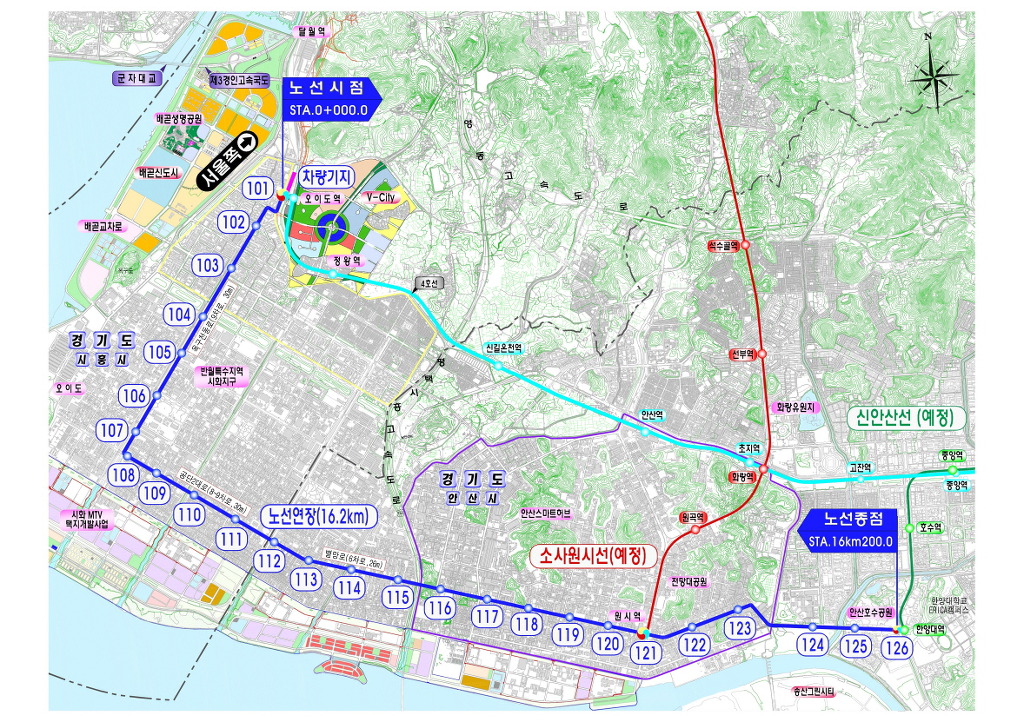차라리 오이도역에서 배곧신도시쪽을 경유하여 오이도까지 연장하는 것이 나을듯합니다만.