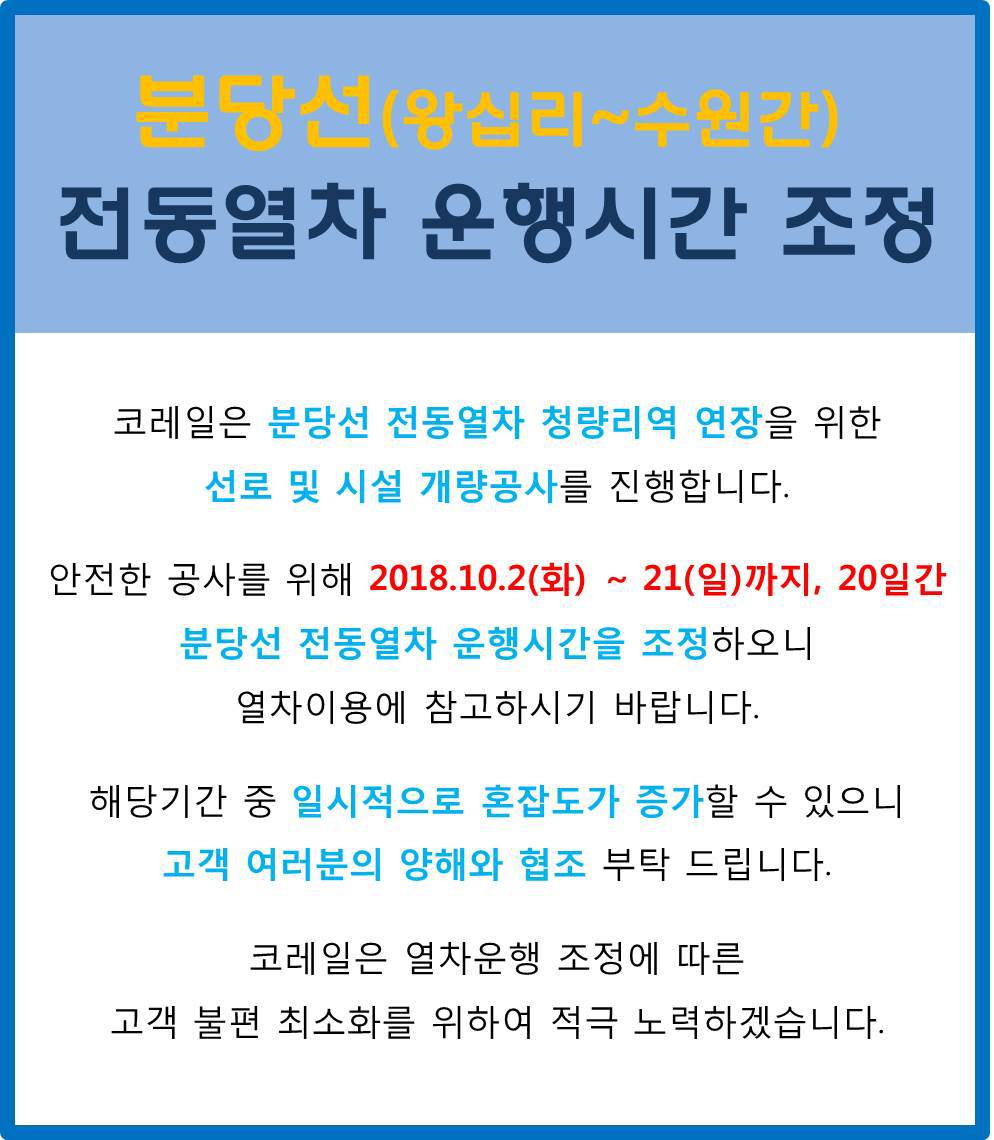 그리고 공사를 위해서 10월 중에 분당선 열차 운행이 일부 줄어든다고 합니다.
