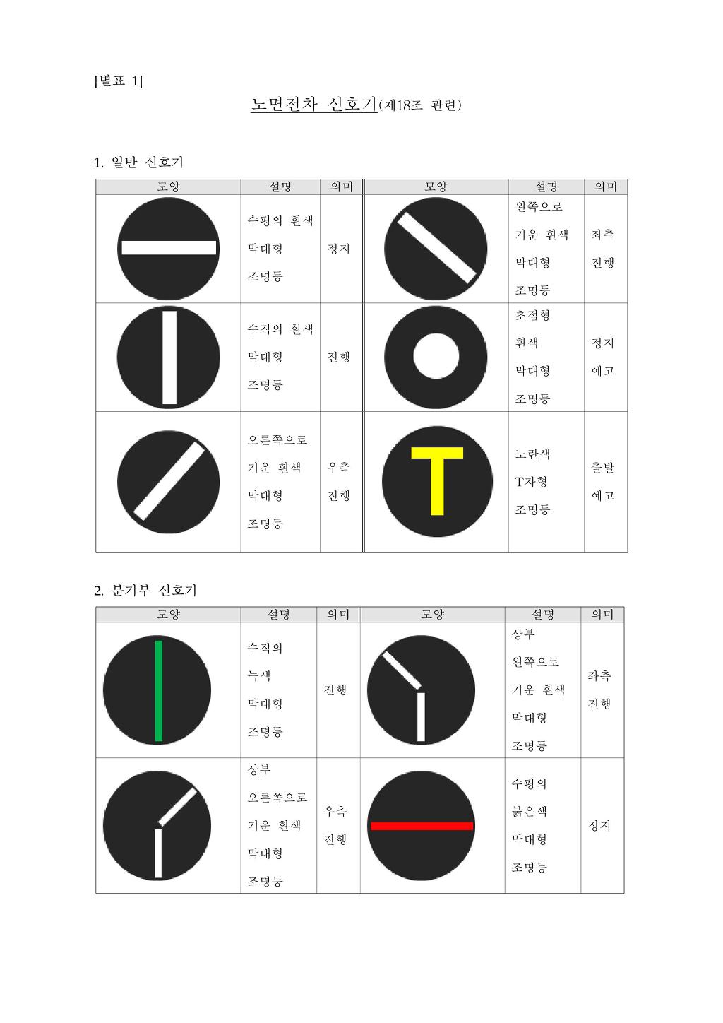 제18조(노면전차 신호기) ① 다음 각 호의 장소에는 별표 1 제1호에 따른 일반 신호기를 설치하여야 한다.