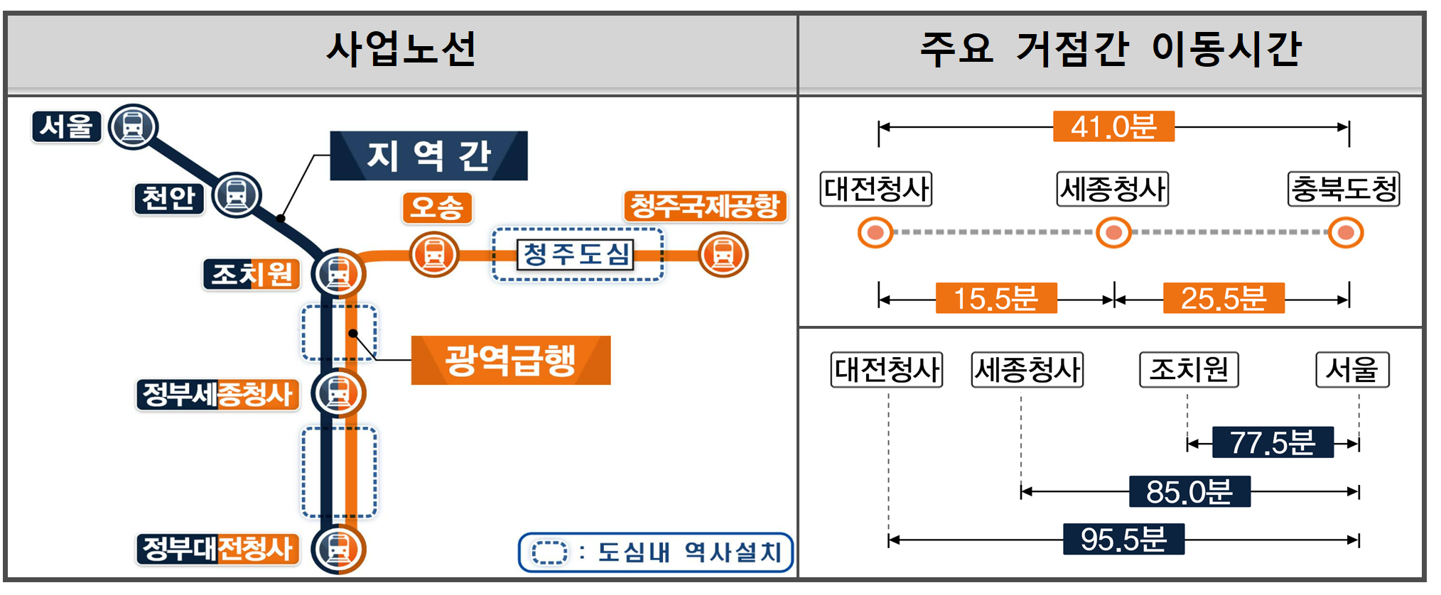대전-세종-청주를 연결하는 GTX급 노선인 CTX의 노선도입니다.
