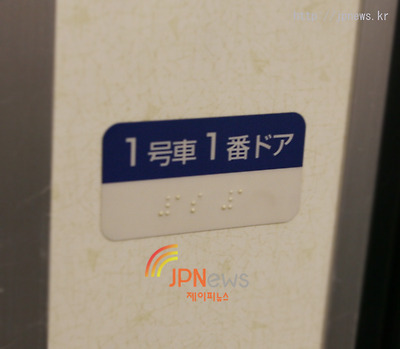 | ▲전철 1호차, 1번 도어를 알리는 점자가 출입문에 붙어있다 ©JPNews | |