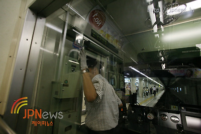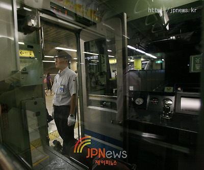 | ▲ 마지막 확인을 하는 지하철 차장, 흔히 볼 수 있는 풍경이다 ©JPNews | |