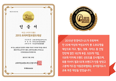 [ 여성 소비자가 뽑은 프리미엄 브랜드 대상 수상 ]