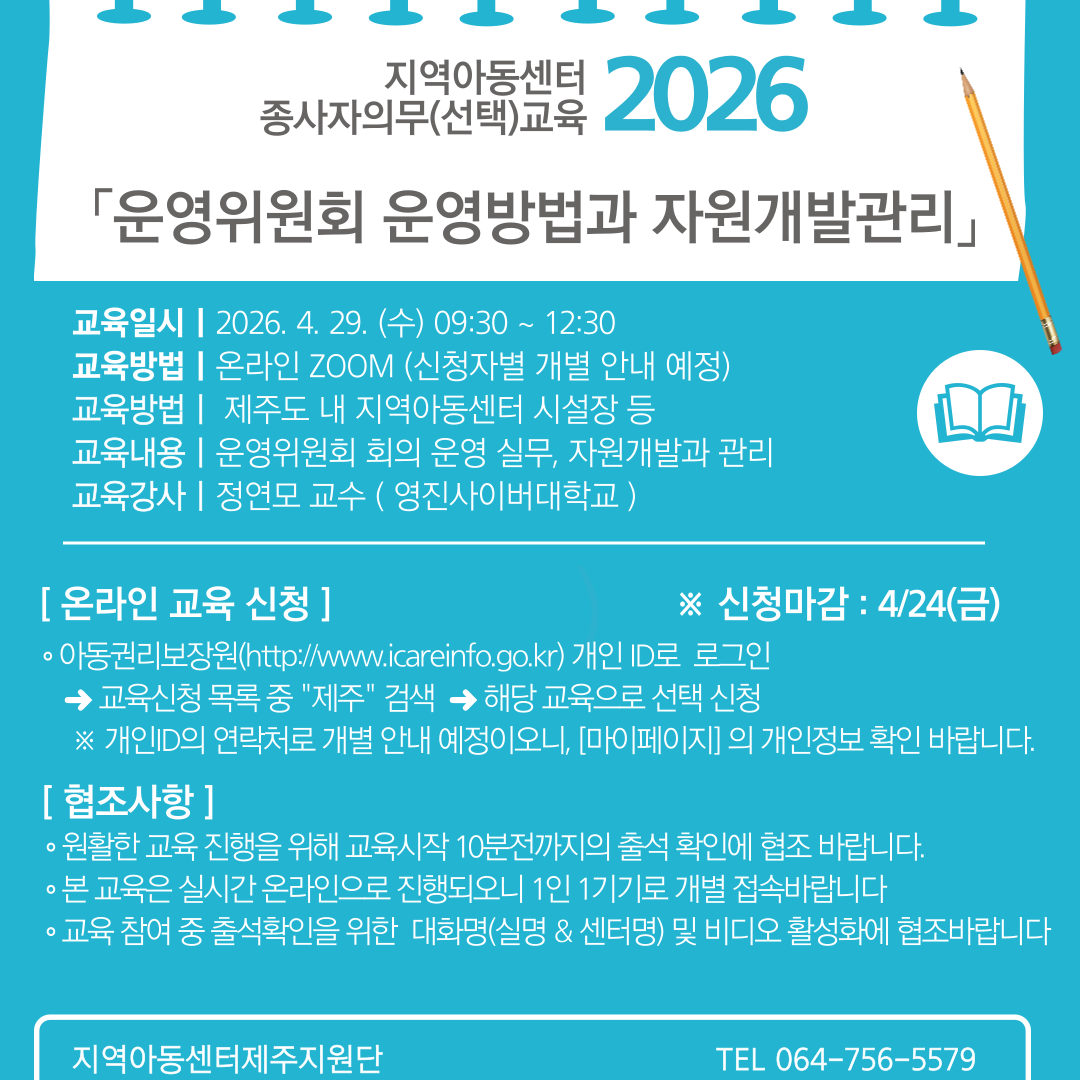 선택교육] 운영위원회 운영방법 및 자원개발 관리 작성자지역아동센터제주지원단|작성시간26.04.13|조회수61 목록 댓글 0 글자크기 작게가 글자크기 크게가 다음검색 현재 게시글 추가 기능 열기 북마크 신고 센터로 신고 댓글 댓글 0 댓글쓰기 답글쓰기 댓글 리스트
