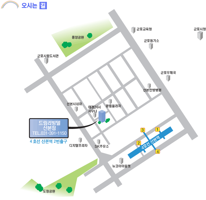 안녕하세요~ 산본 중심상가에 위치한 드림 리빙텔입니다.