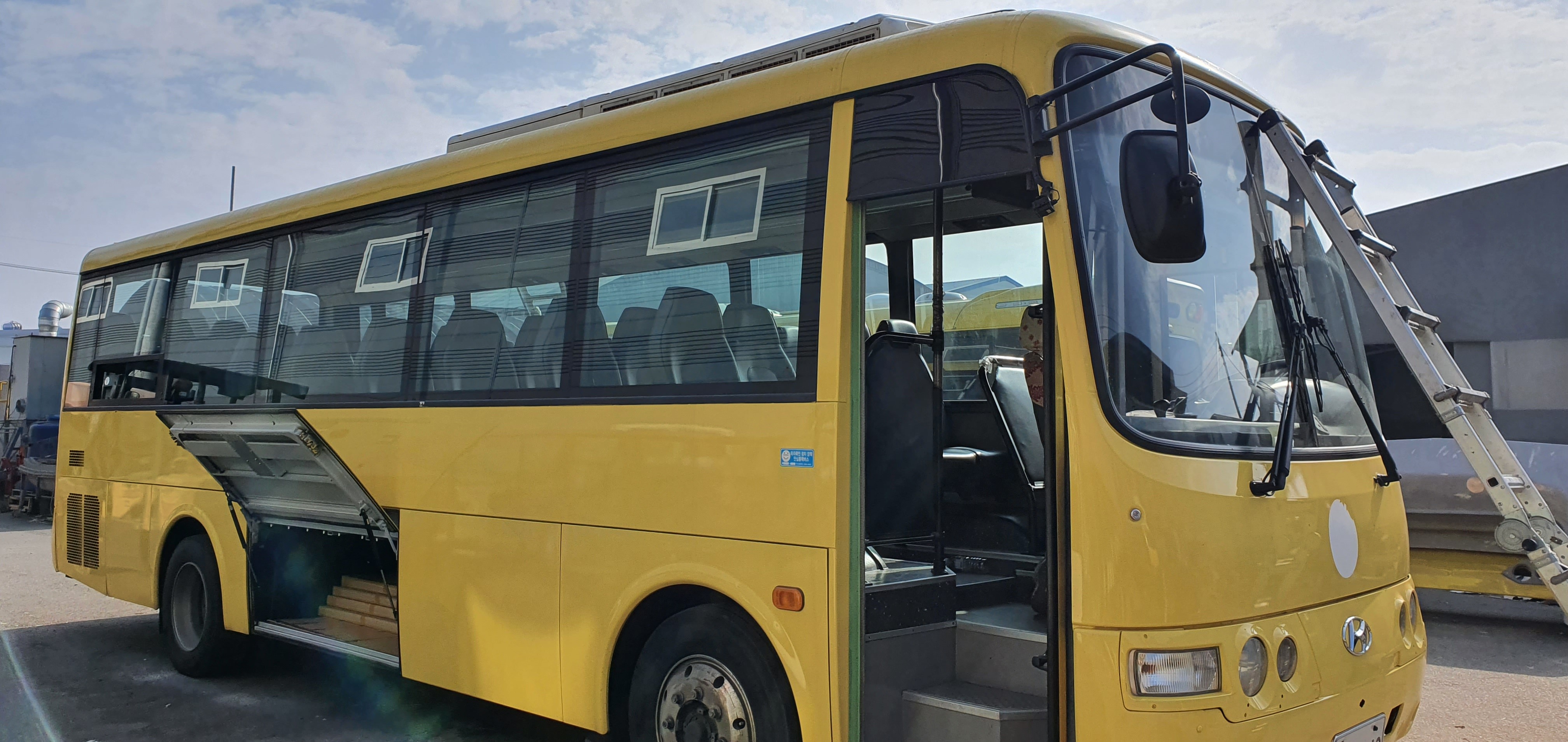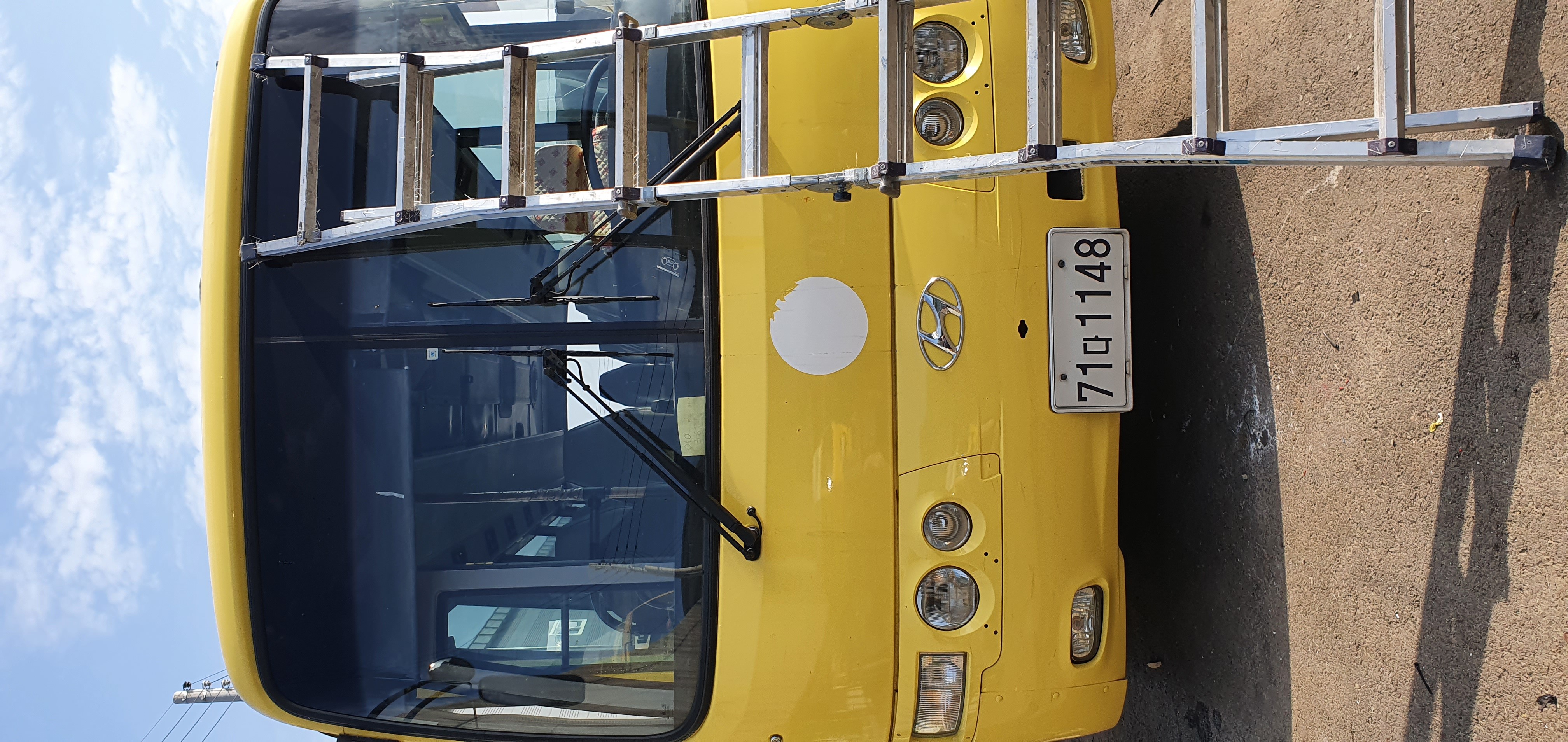 당사로 입고된 에어로타운 차량.. 차량이 노랑색인 이유는 어린이 보호차량으로 운행되었던 차량이라