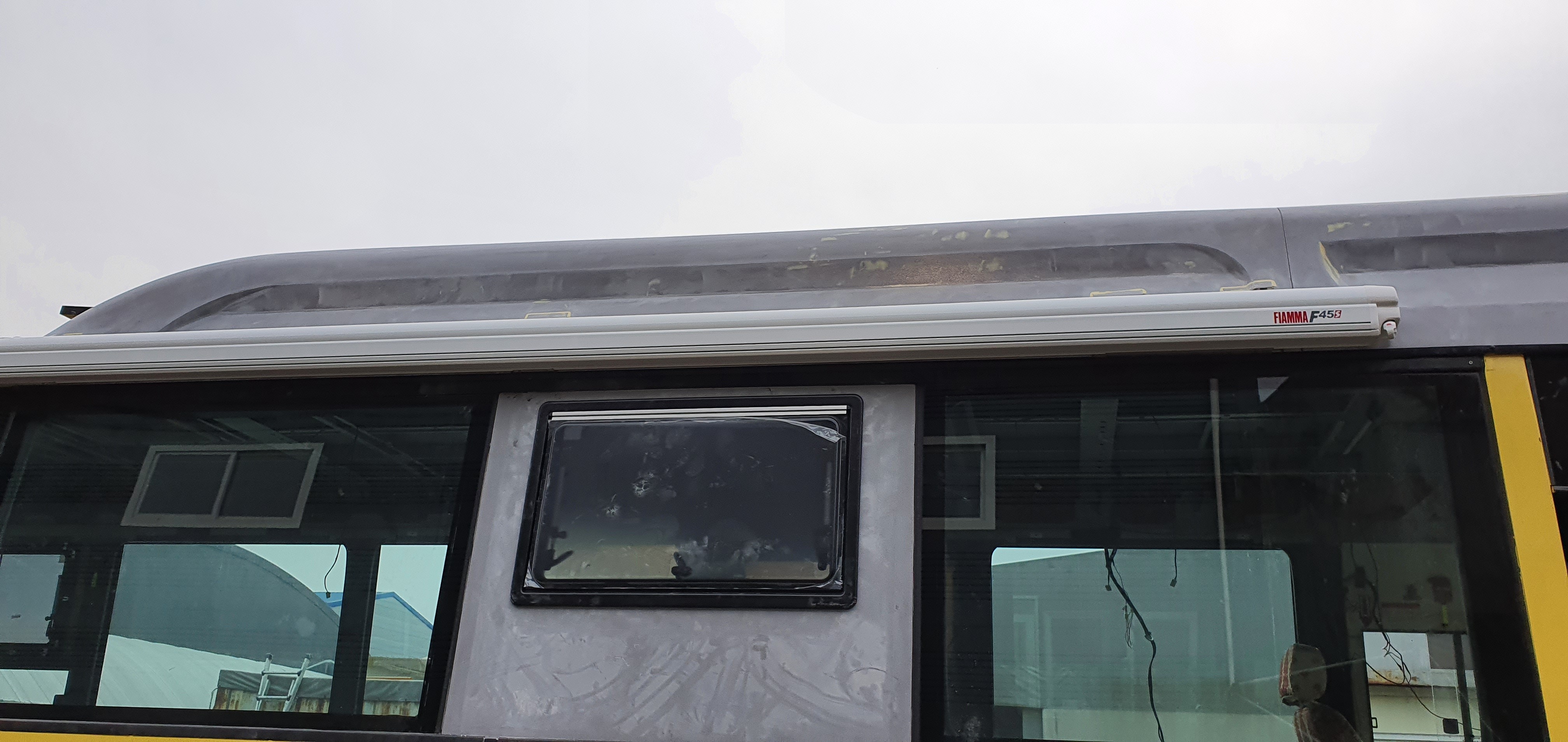 어닝 과 창문... 캠핑카에 어닝 설치시 당사에 어닝을 가져오시면 어닝 과 스포일러 작업을 함께 해드립니다.