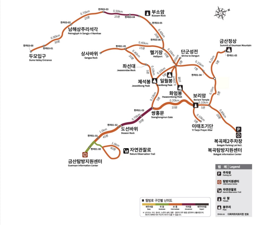 → 쌍홍문 → 금산탐방지원센터 (5.9km, 약5시간 소요)