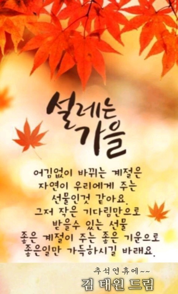 설레는 가을 작성자김봉희284|작성시간19.09.21|조회수220 목록 댓글 0 글자크기 작게가 글자크기 크게가 0000 다음검색 현재 게시글 추가 기능 열기 북마크 공유하기 신고 센터로 신고 댓글 댓글 0 댓글쓰기 답글쓰기 댓글 리스트