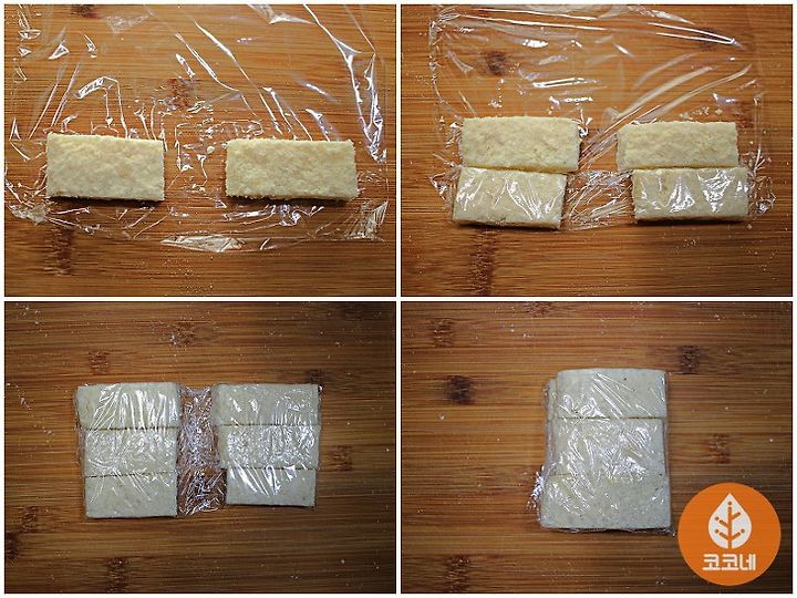 반복해서 떡을 투명랩으로 감고,