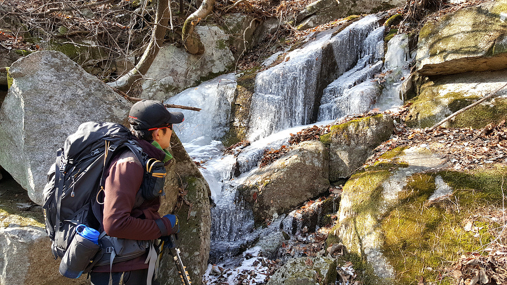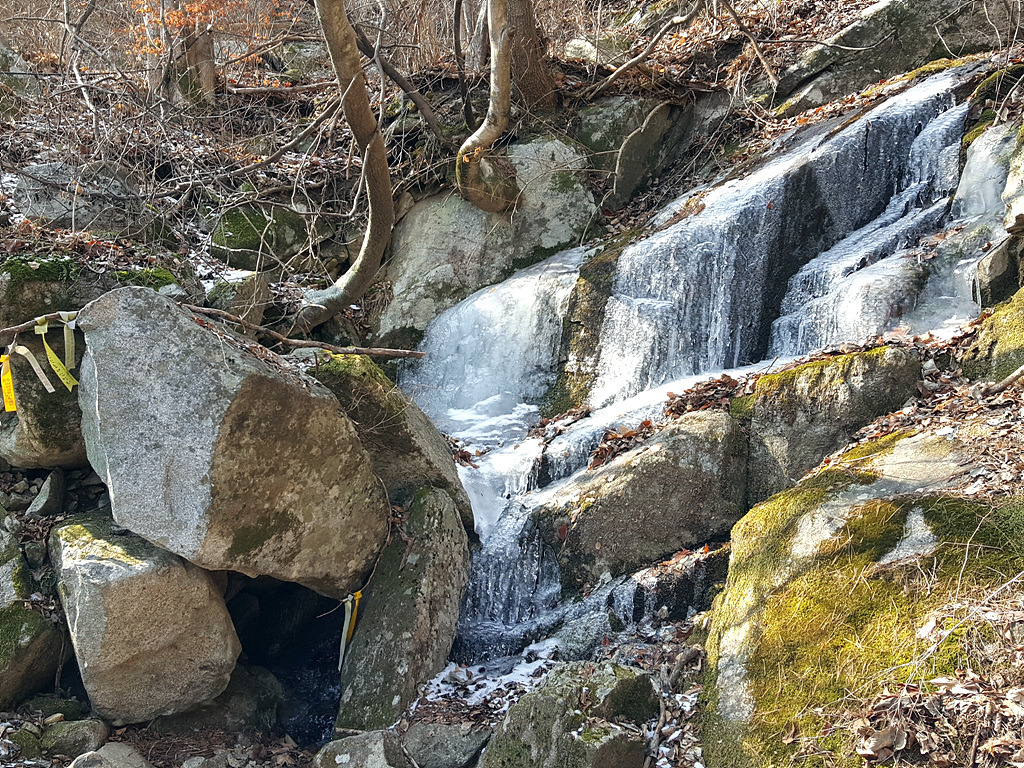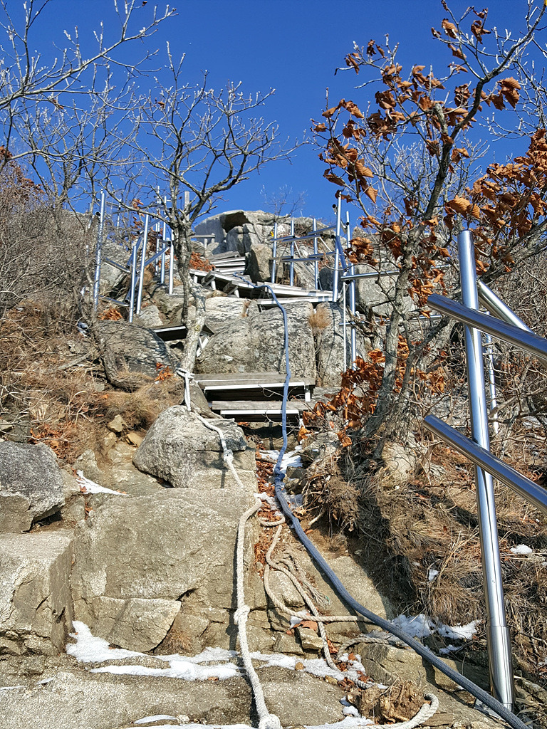 눈이 없을줄 알았는데 하산길에는 아이젠 착용