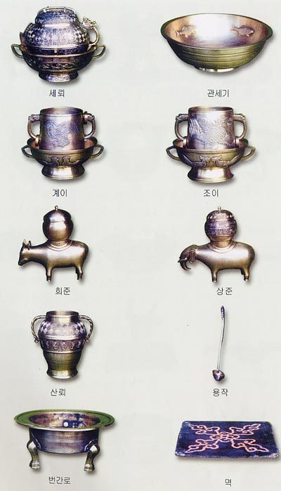o 향로(香爐): 향을 사르는 촛불을 담는 놋쇠 제기