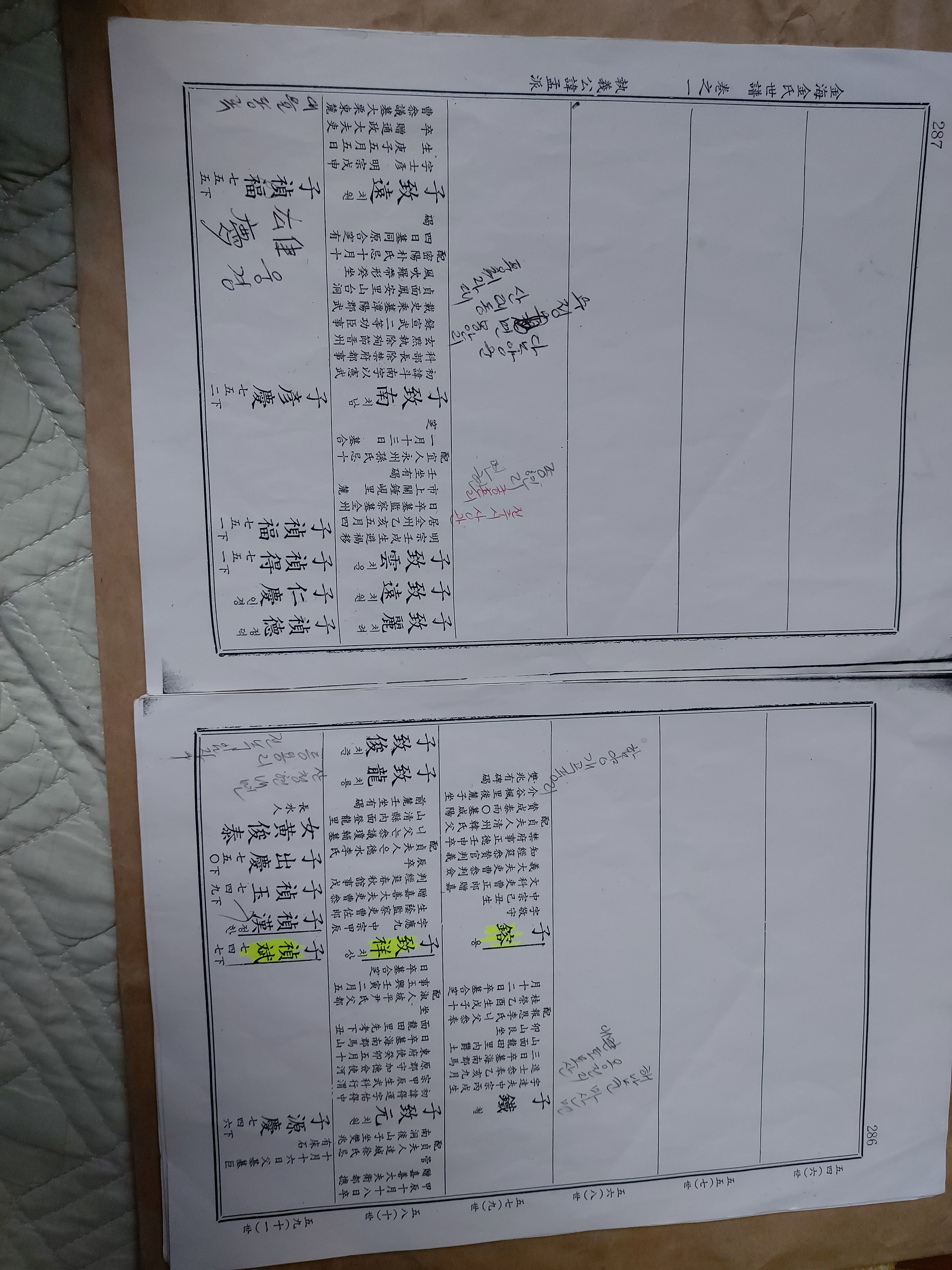 (수단하한1912) 보첩확인 제4권 荒장 뒤쪽에 상묵(尙黙)-重轍-顯大 제7권 日장 뒷면에 顯大-再宅-國明, 國明의 子로 昌珍, 昌玉, 昌舜, 昌憙가 있으며