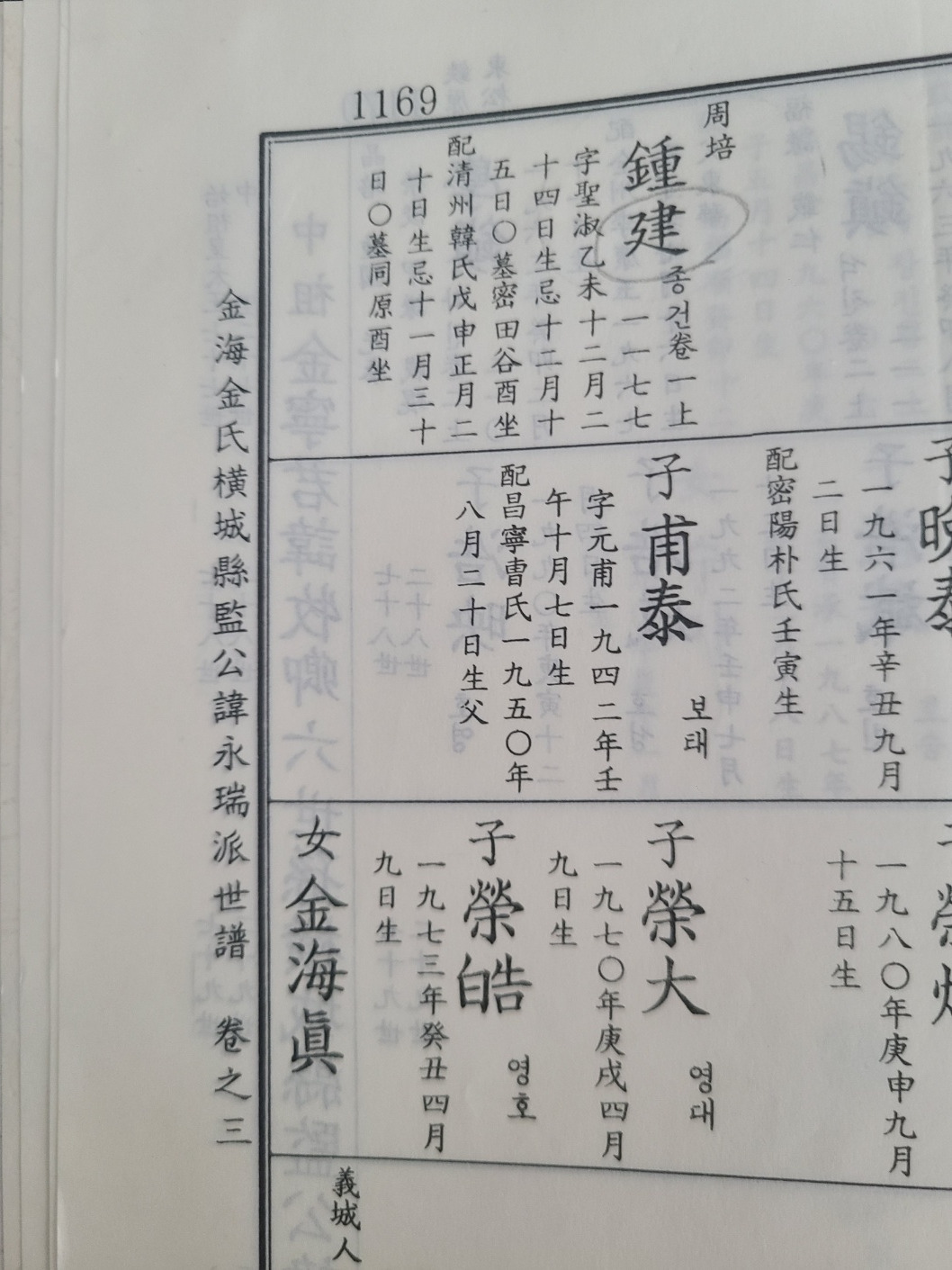제가 영대, 동생이 영호로 올라 있고 누나가 시집가면서 매형이 올라있습니다.
